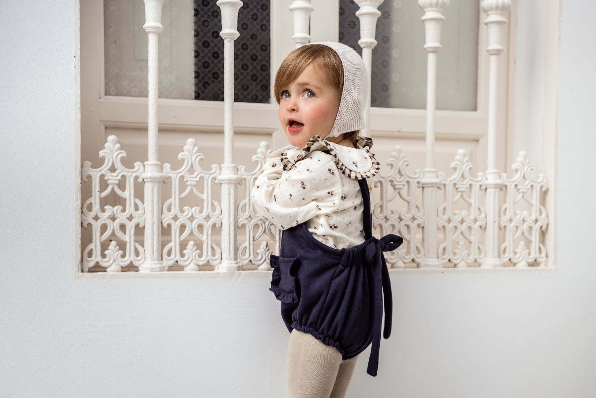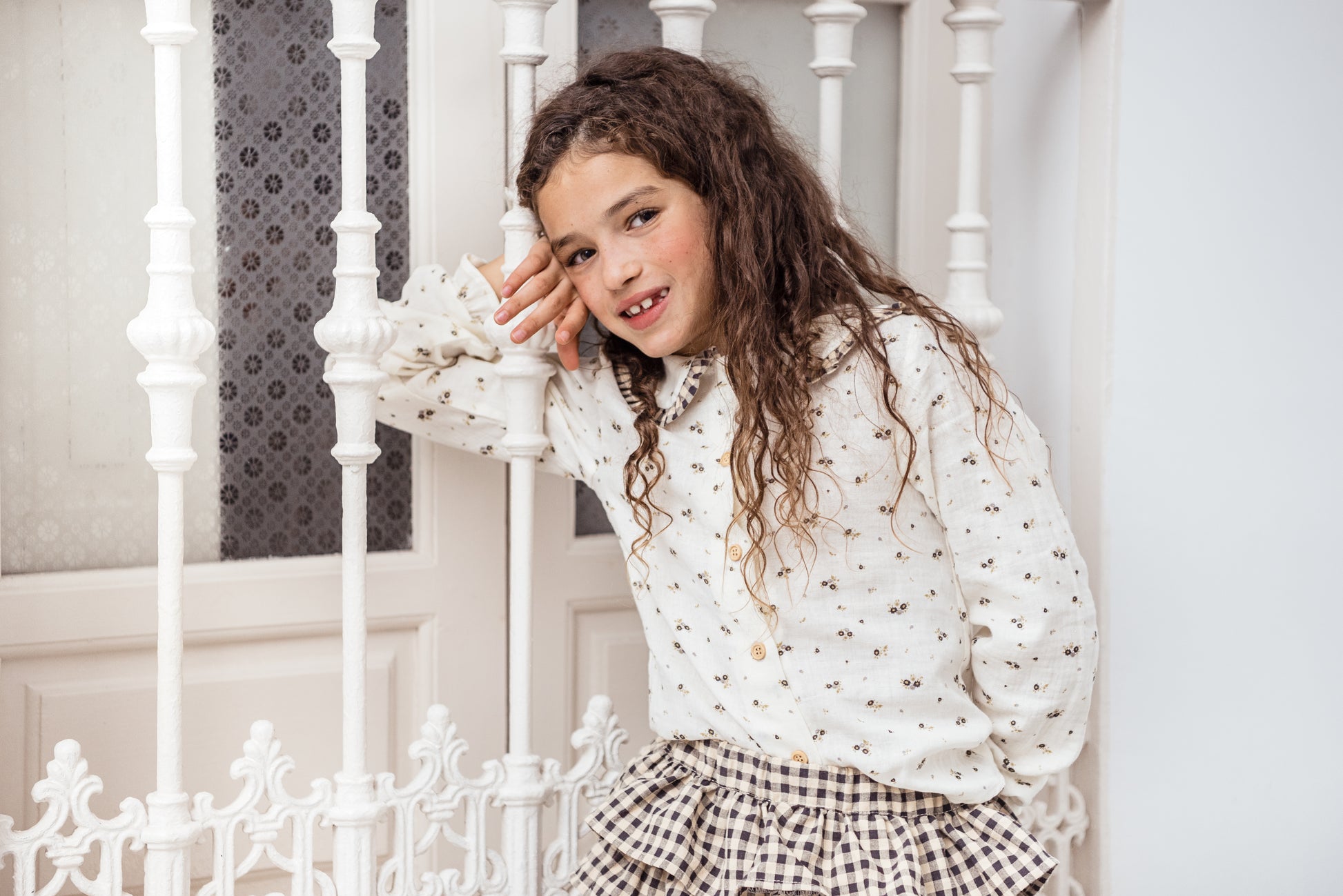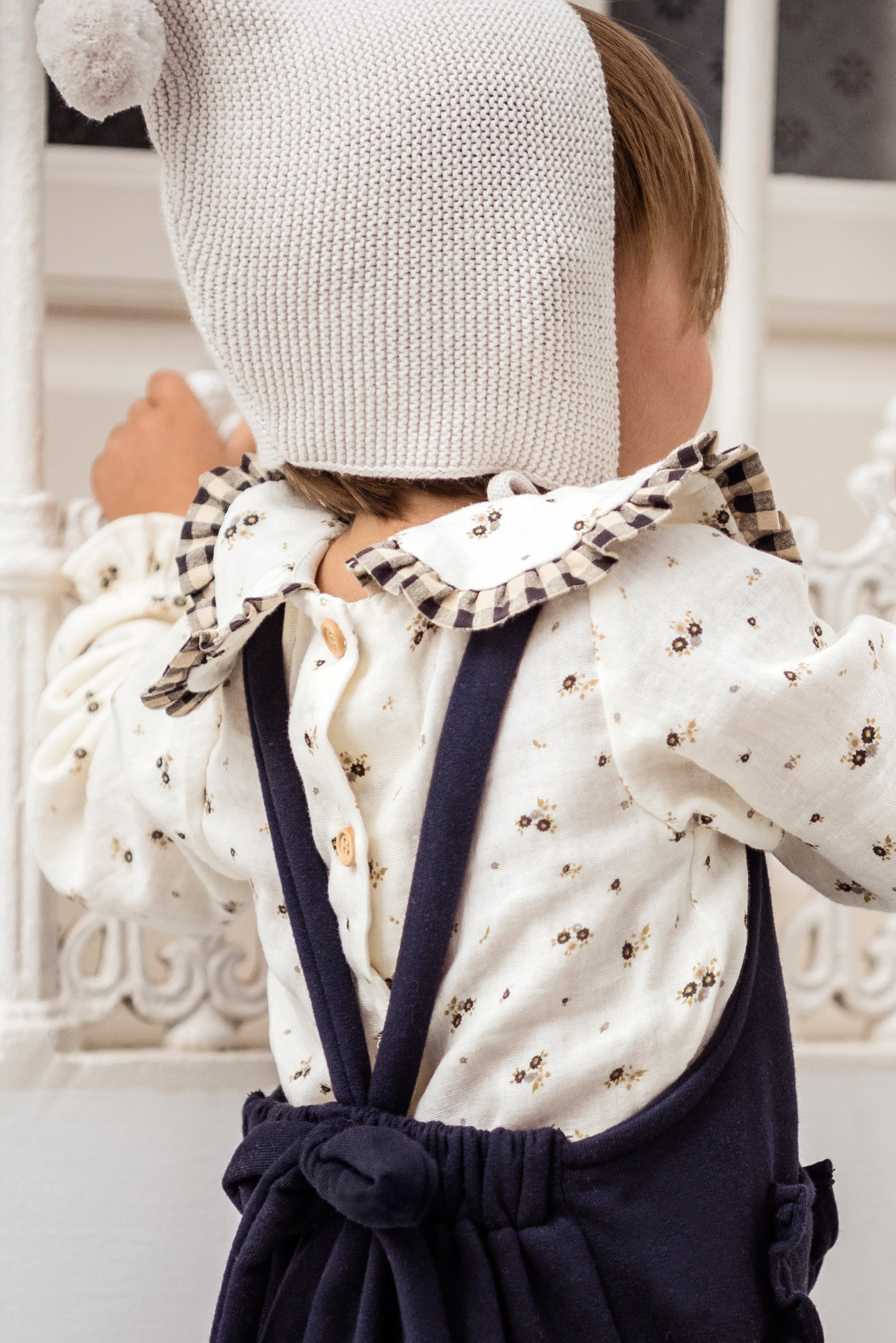 Un tejido en bambula muy especial , gustosita y calentita , con detalles de botones de madera y vichy en plisado .