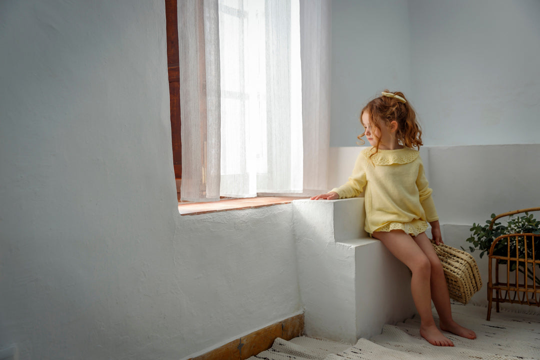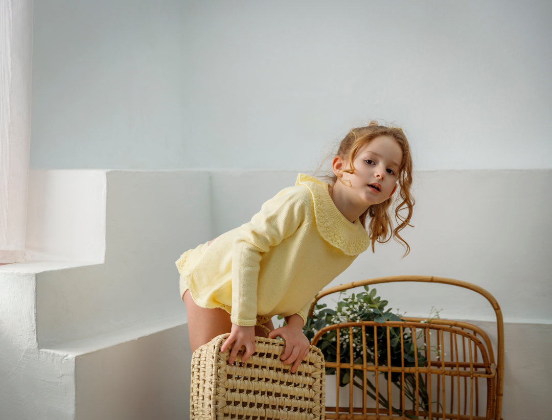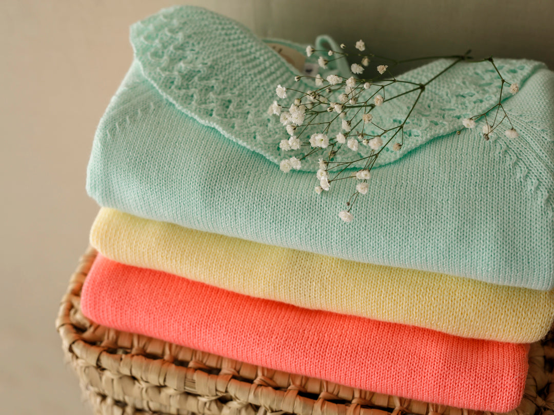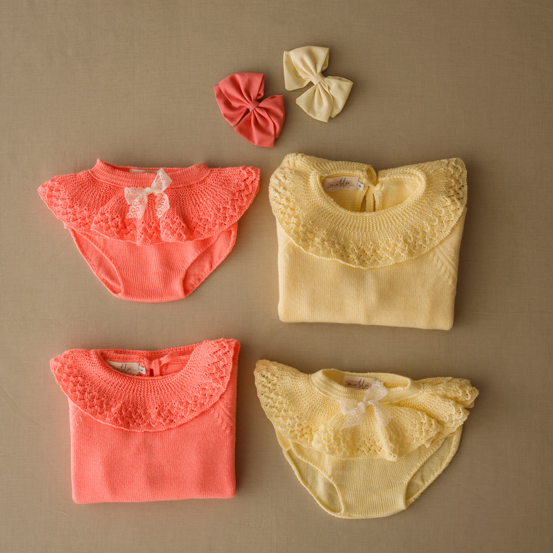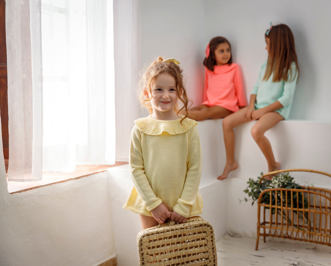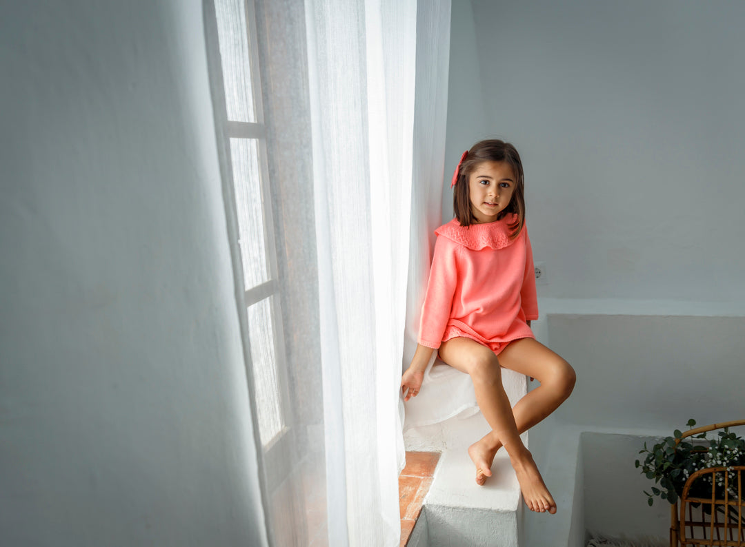 *Jersey cuello volante brocado de mangas francesas , abierto por atrás. Se cierra con dos lacitos