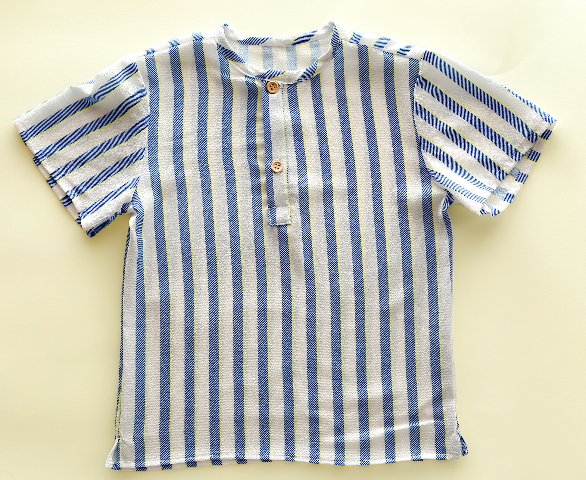 Polera en tejido en exclusivo para Mabloo Baby & Kids , con unas rayas en Navy y flúor
