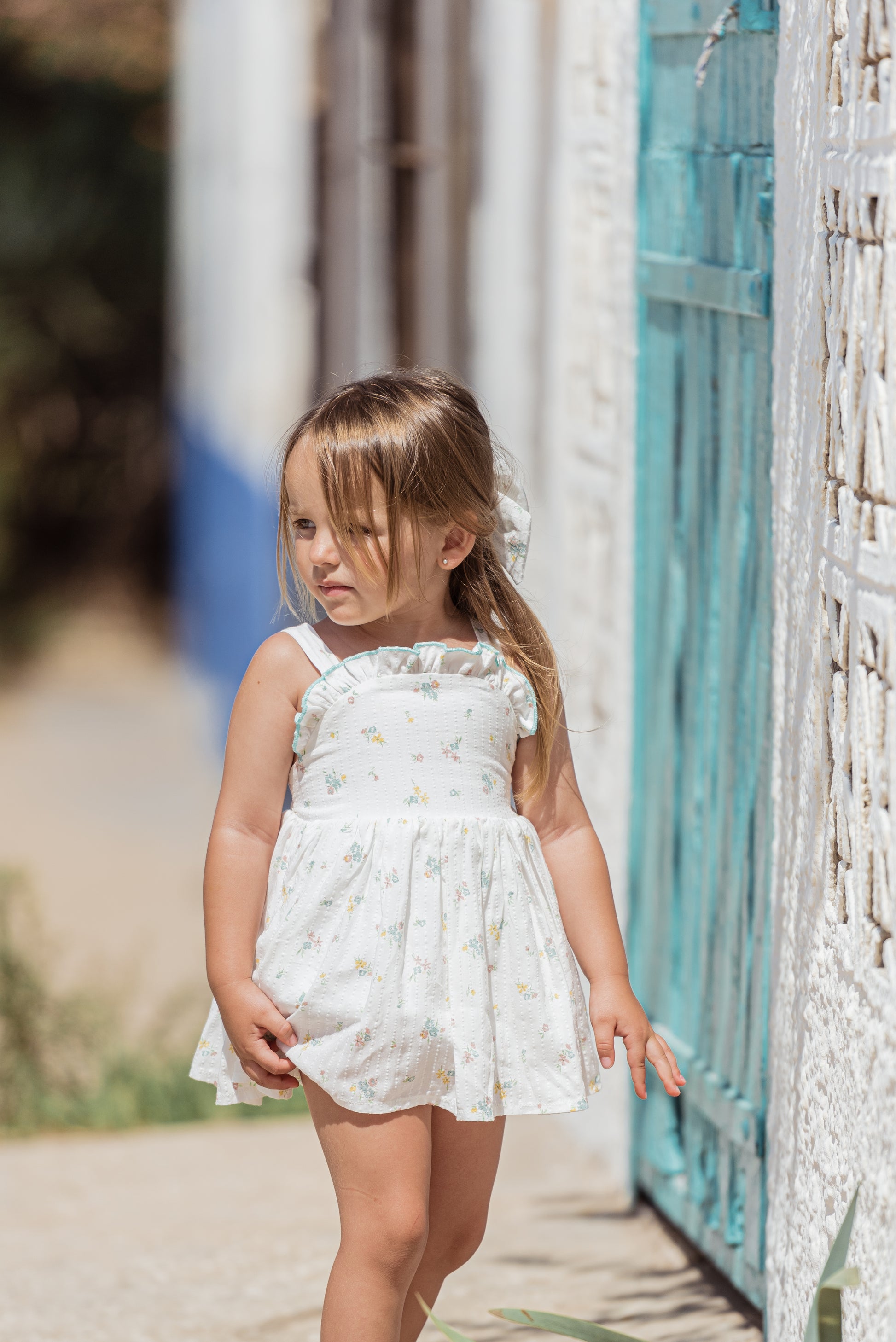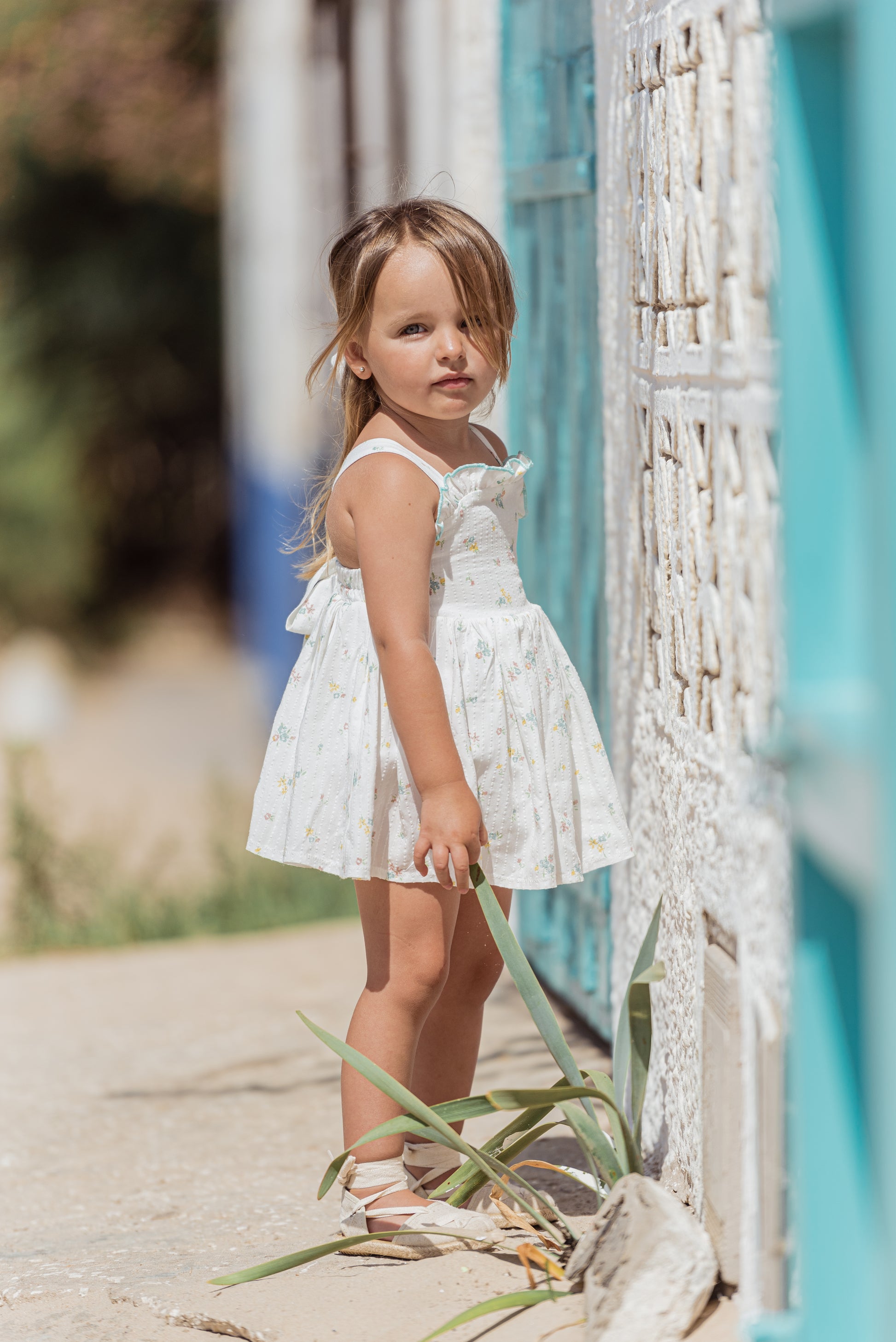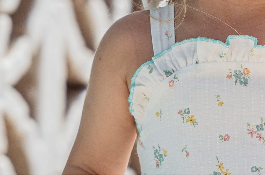 Flor de Sal es un tejido estampado sobre una base de algodón 100% con un bordado en el mismo tejido y un estampado floral en tonos muy suaves y veraniego .