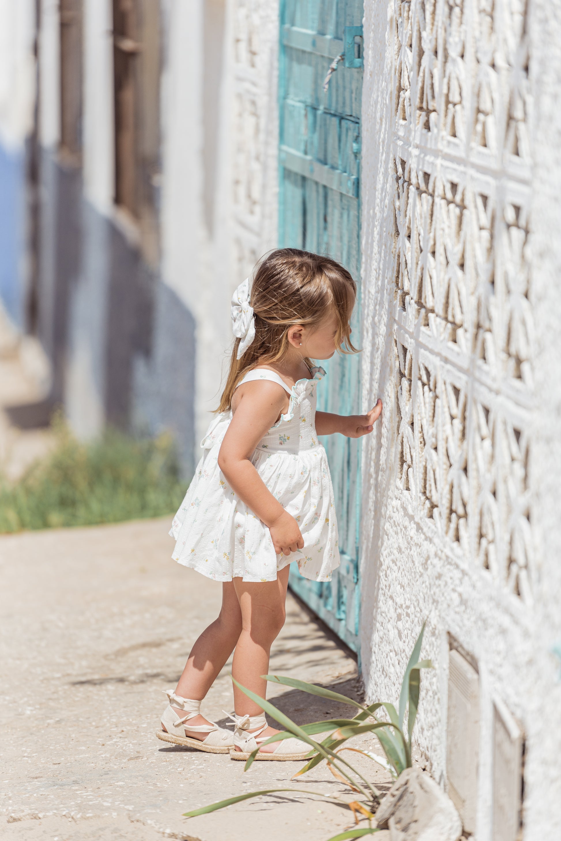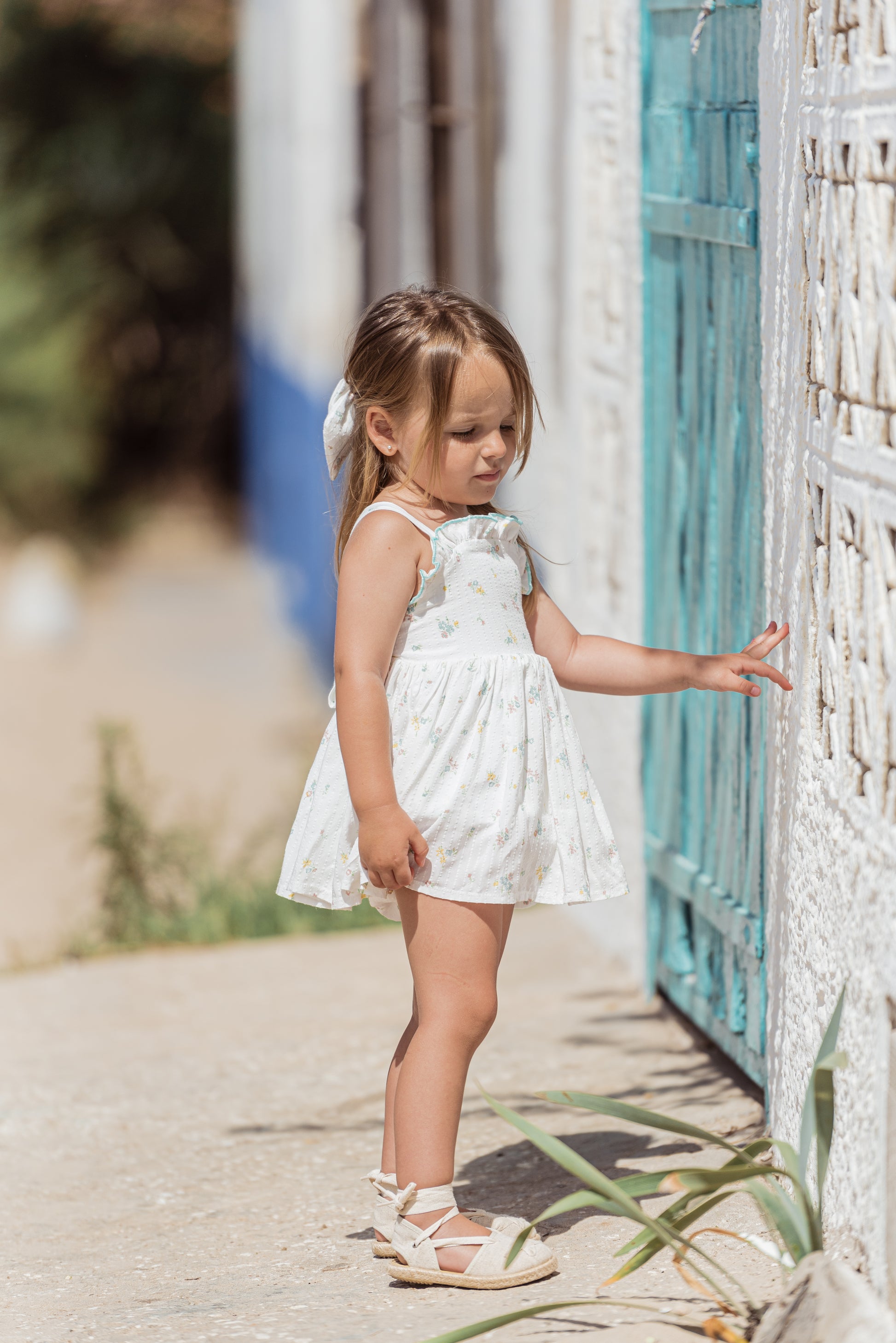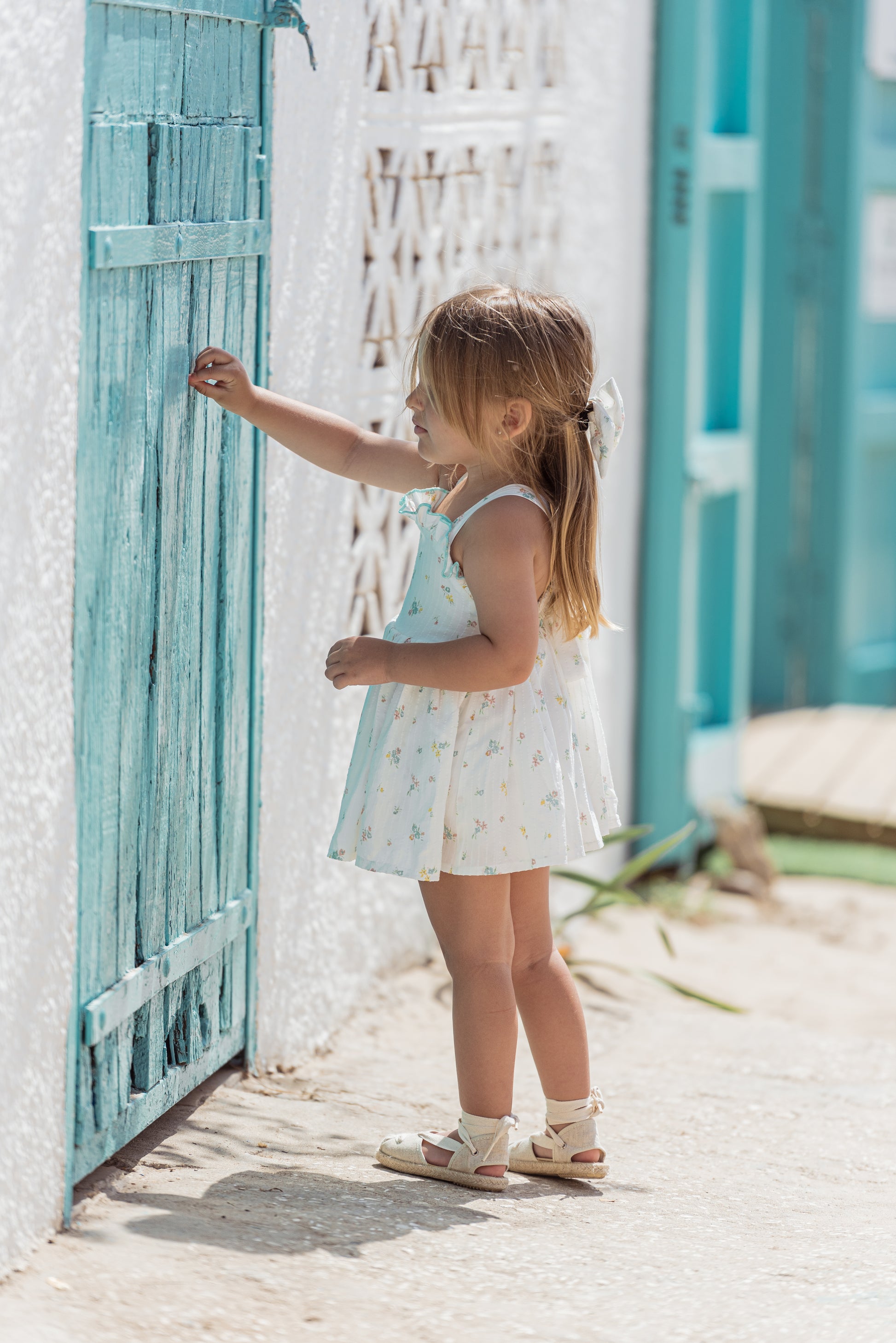 Flor de Sal es un tejido estampado sobre una base de algodón 100% con un bordado en el mismo tejido y un estampado floral en tonos muy suaves y veraniego .