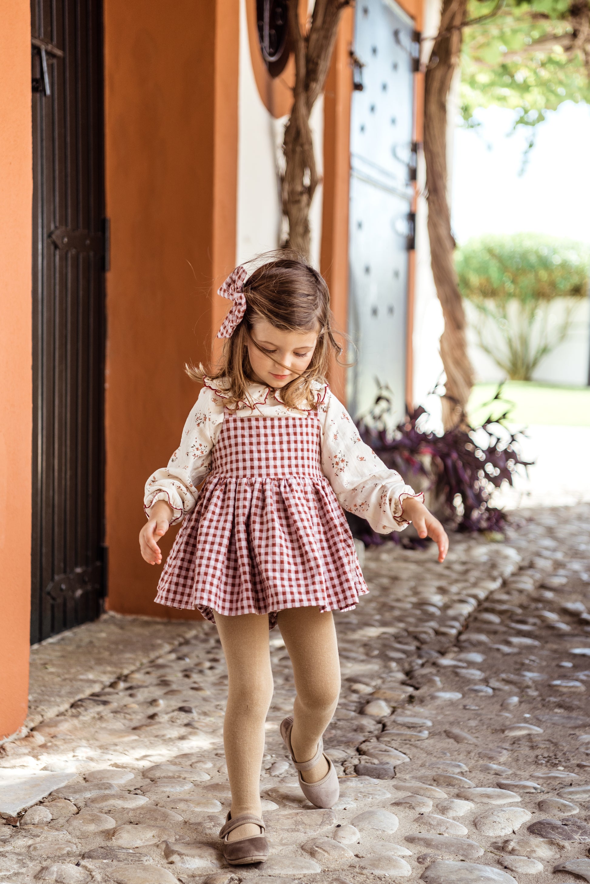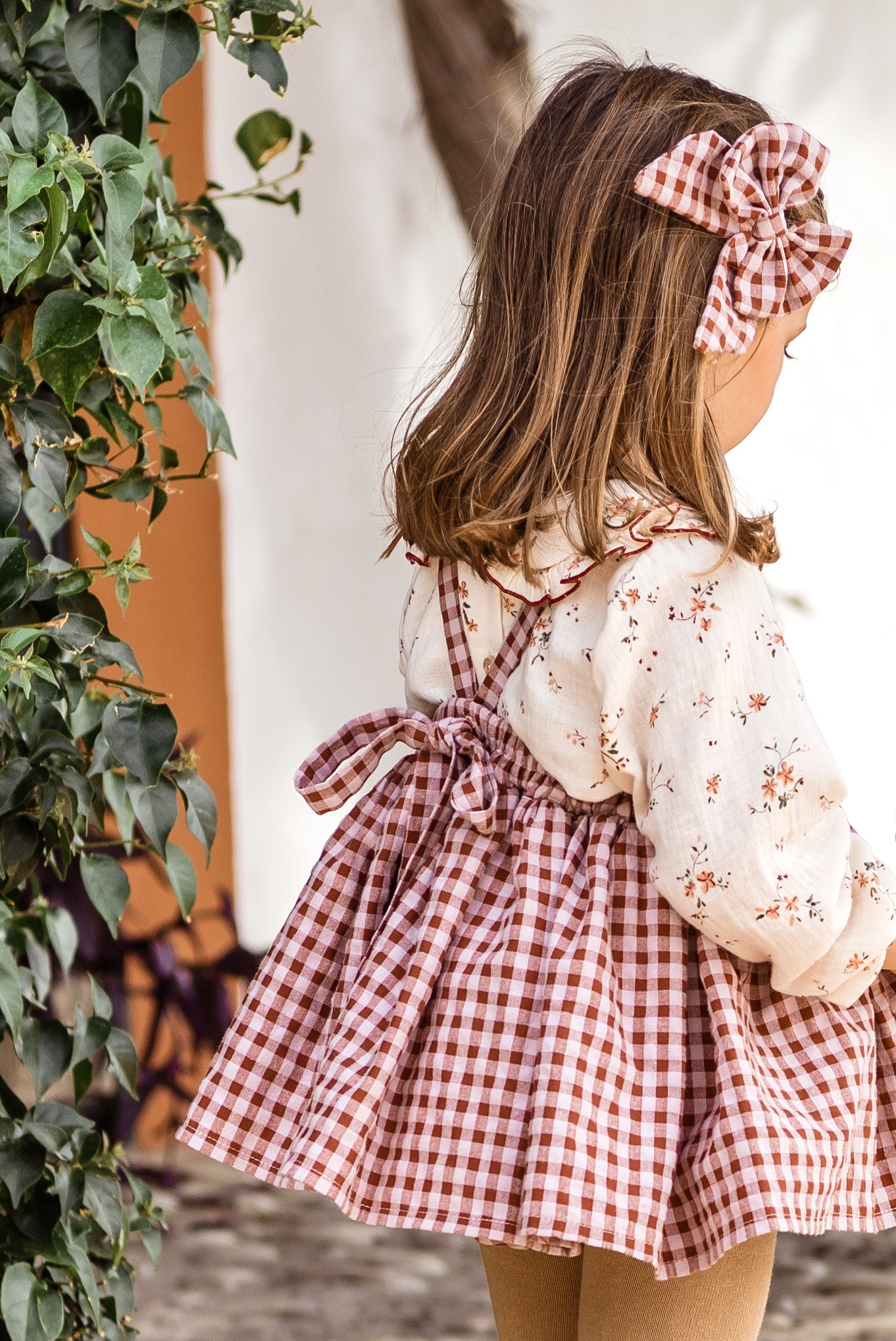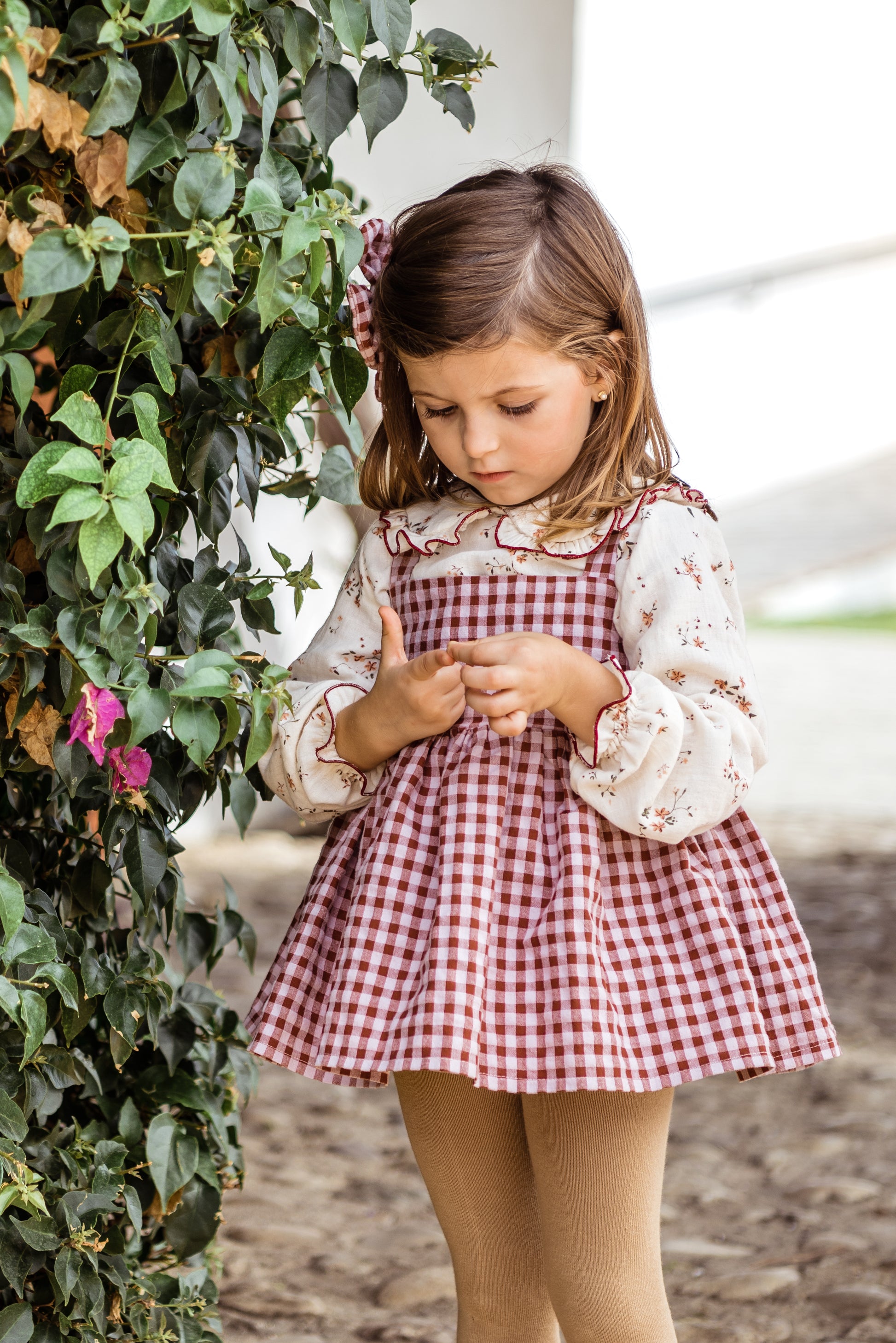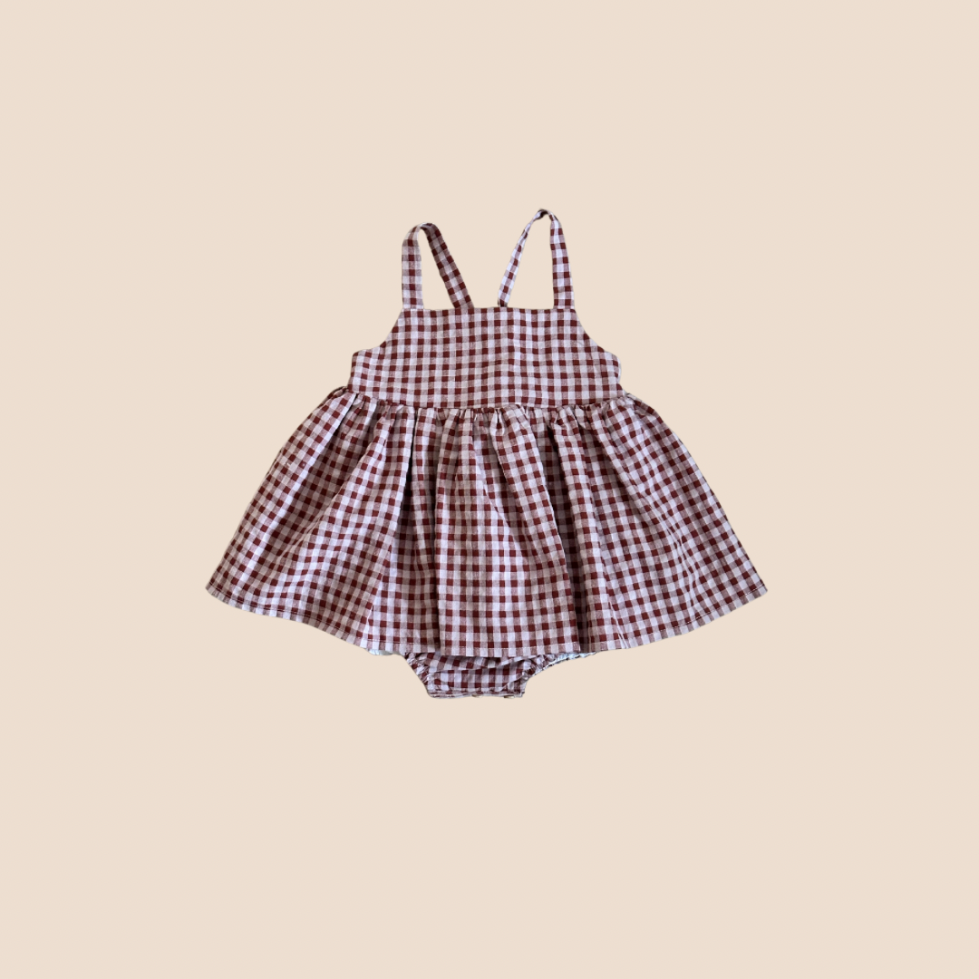 Preciosa ranita en tejido vichy Cherry . Abotonada por la zona del pañal para facilitar el cambio o ir al baño . Ajustable por las cintas para así poder regularle .