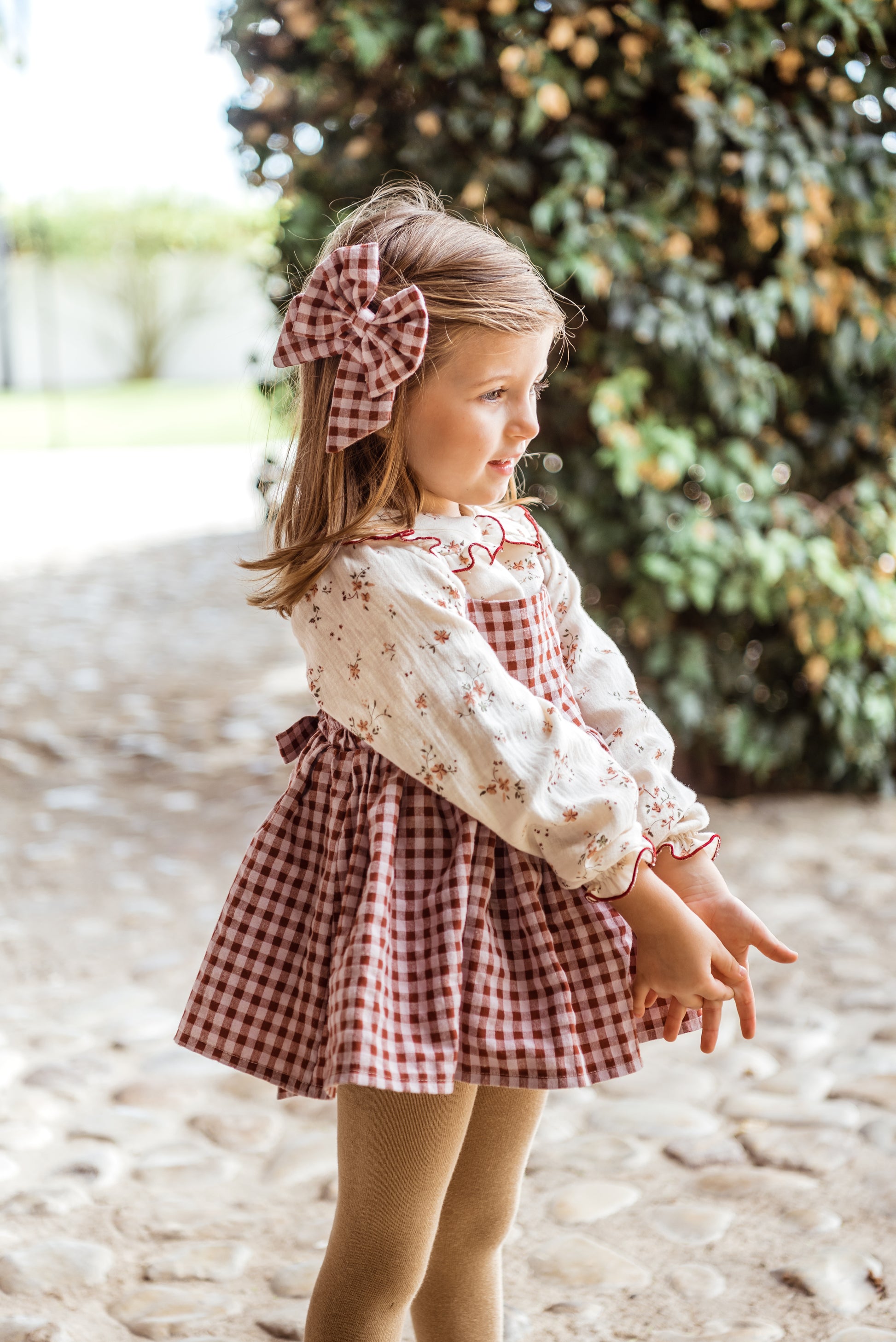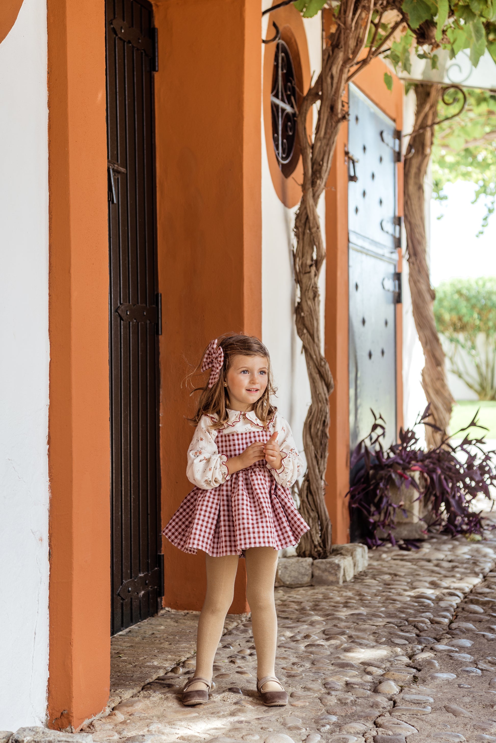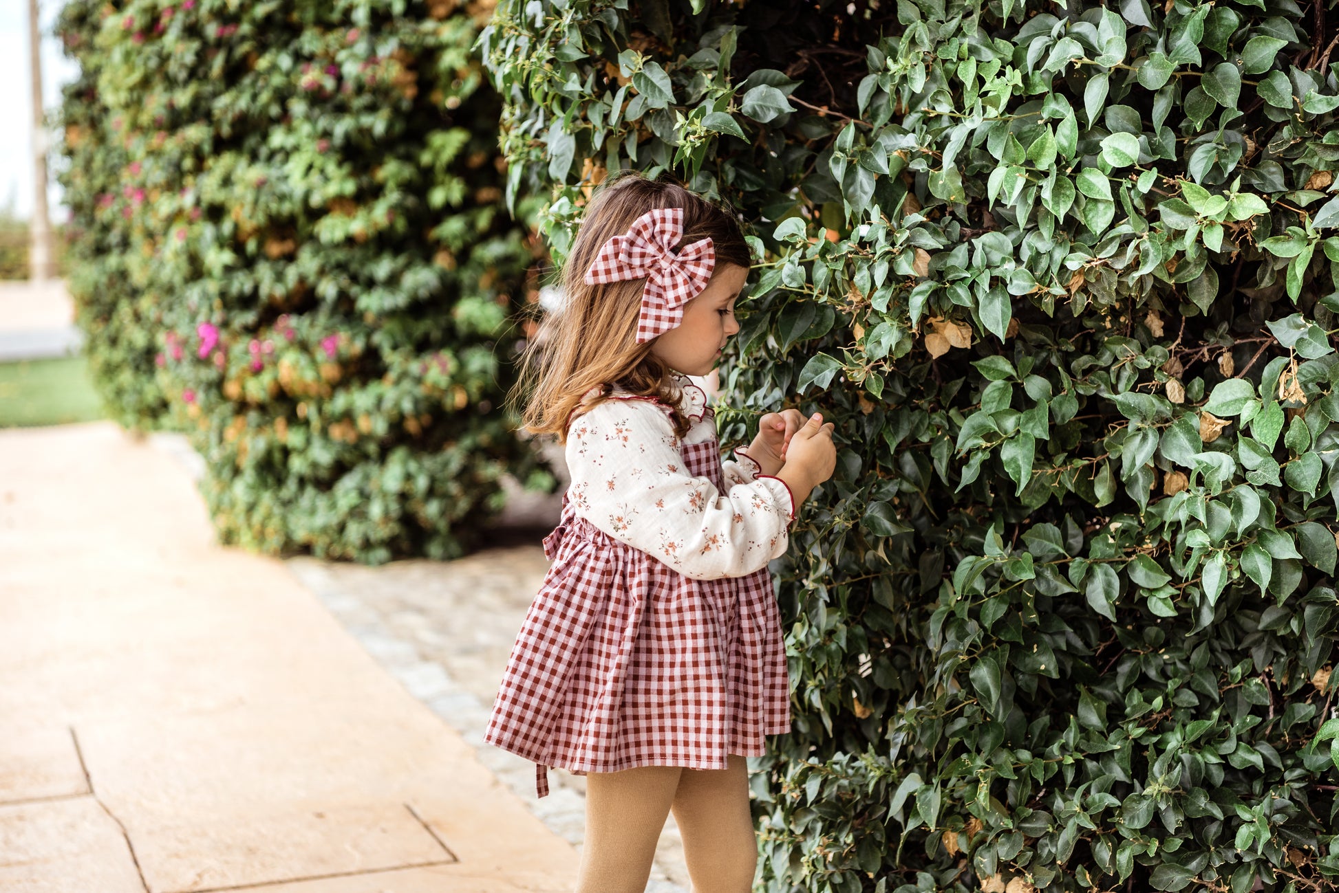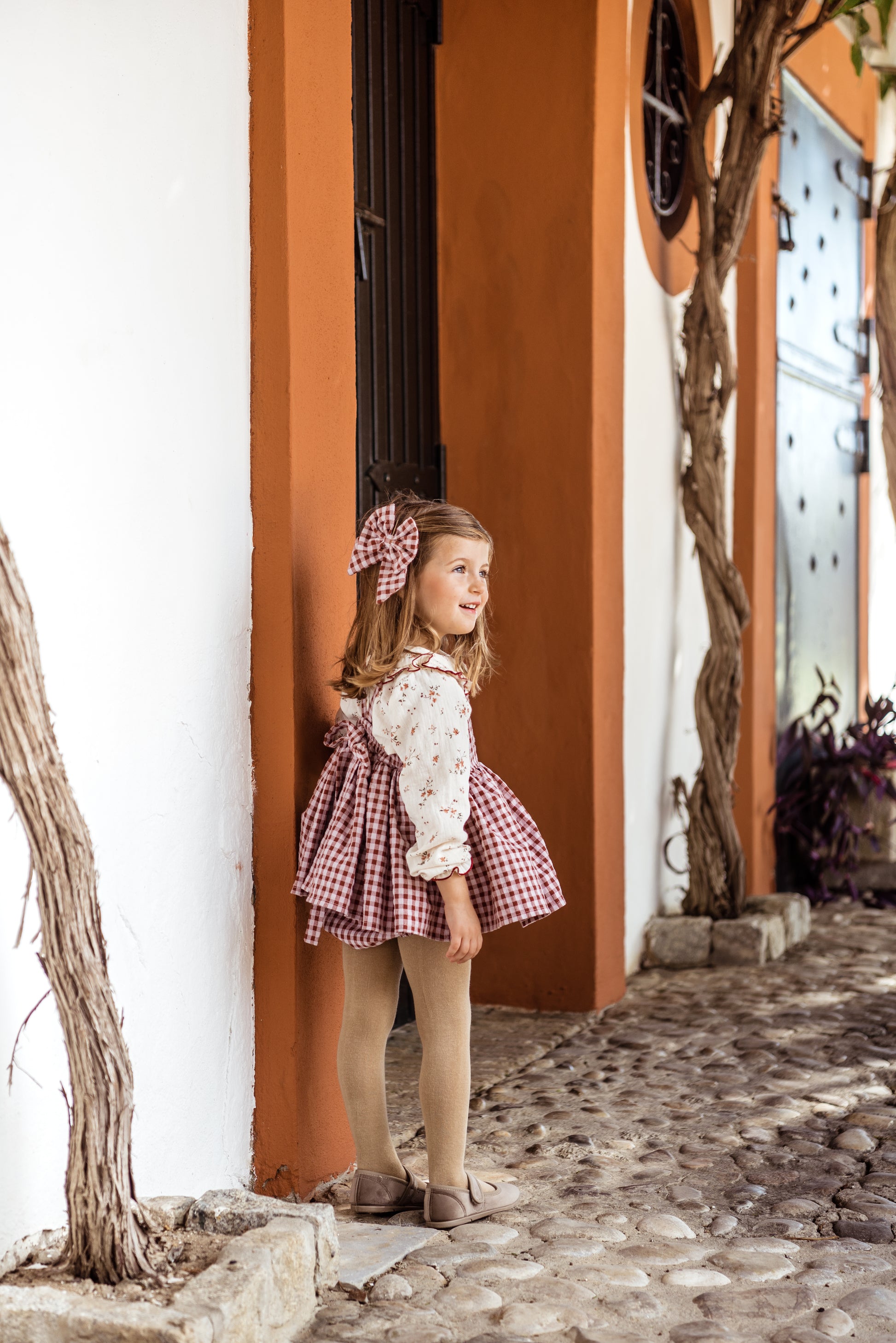 Preciosa ranita en tejido vichy Cherry . Abotonada por la zona del pañal para facilitar el cambio o ir al baño . Ajustable por las cintas para así poder regularle .