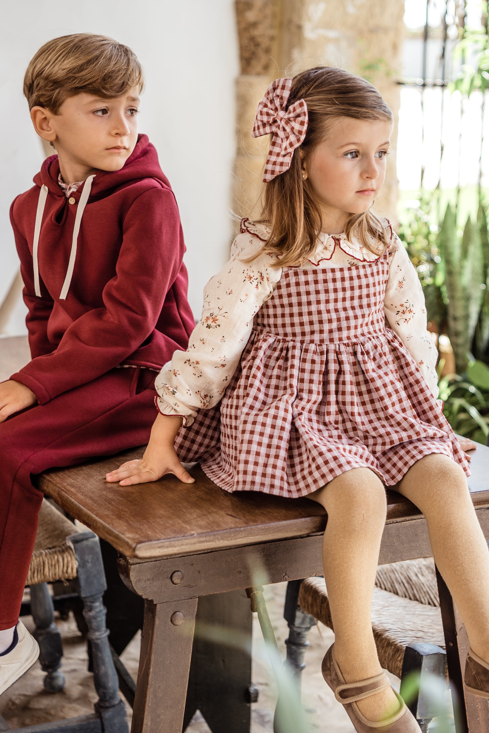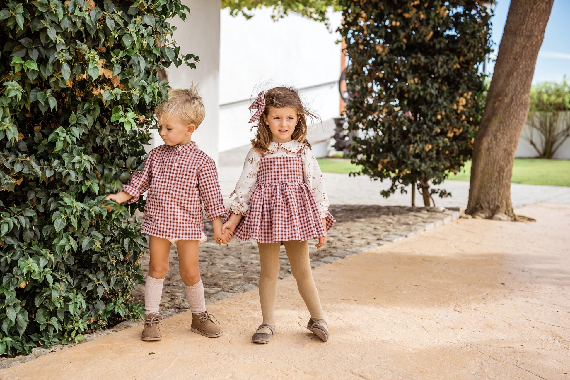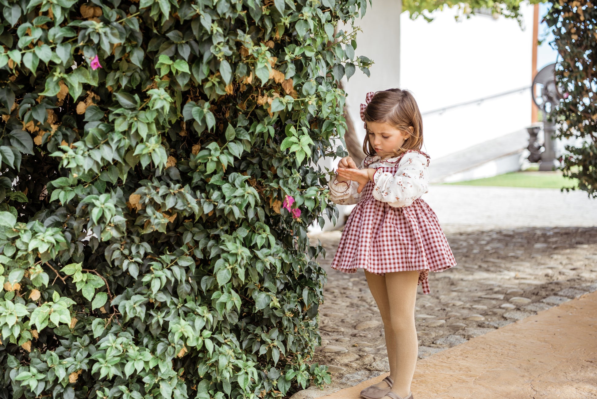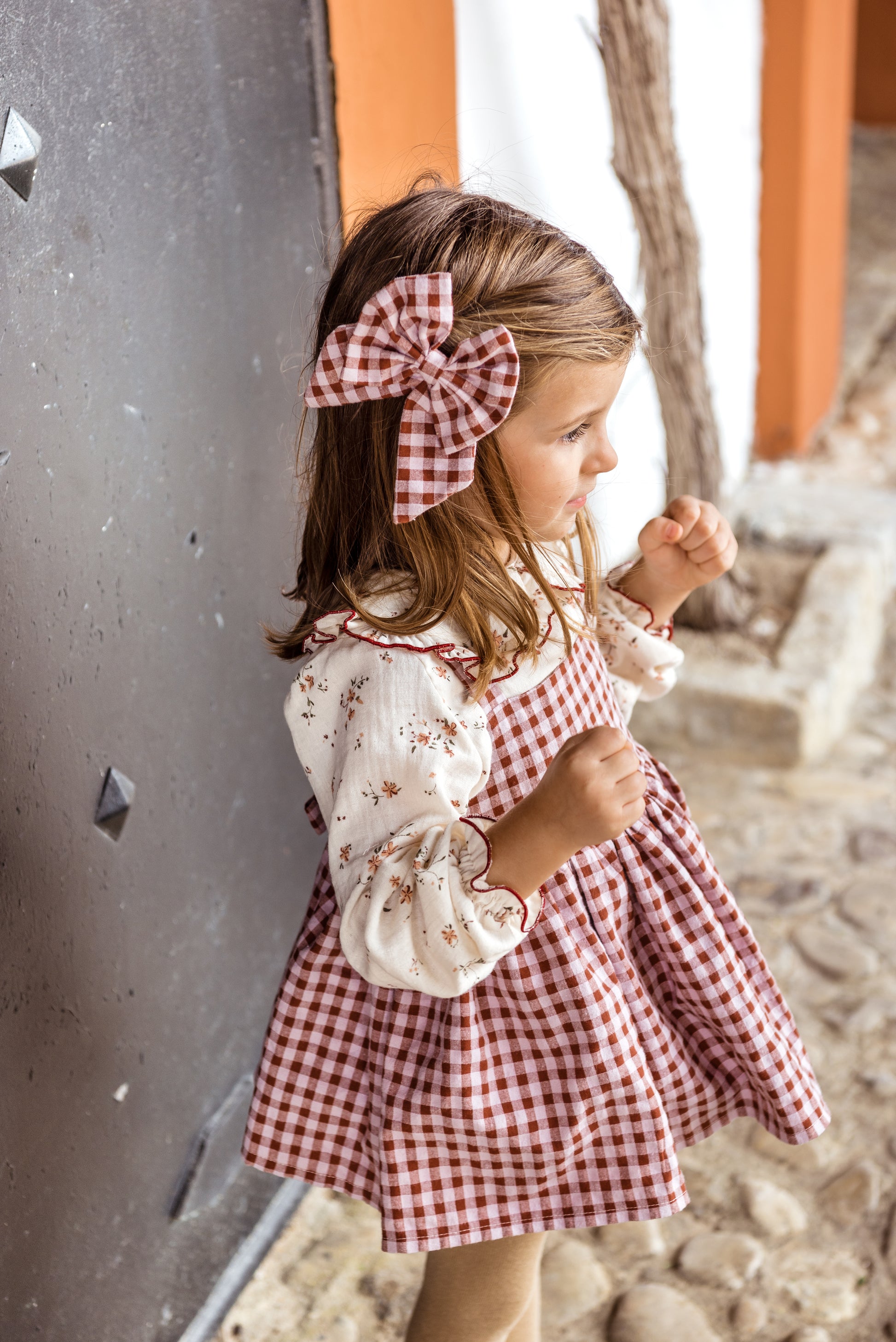 Preciosa ranita en tejido vichy Cherry . Abotonada por la zona del pañal para facilitar el cambio o ir al baño . Ajustable por las cintas para así poder regularle .