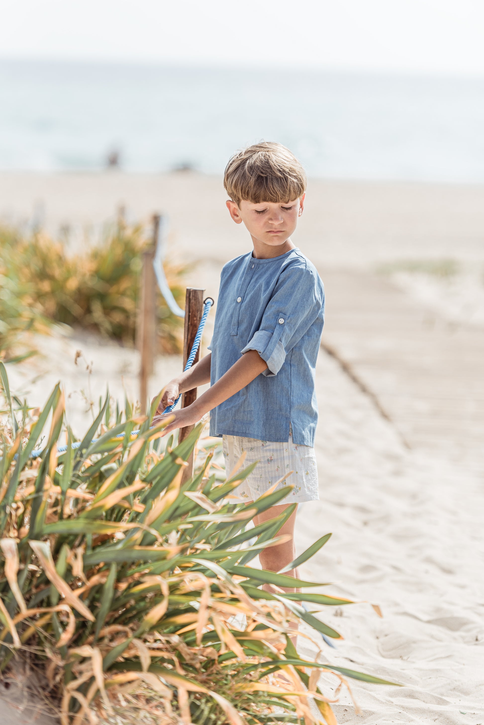 Flor de Sal es un tejido estampado sobre una base de algodón 100% con un bordado en el mismo tejido y un estampado floral en tonos muy suaves y veraniego .